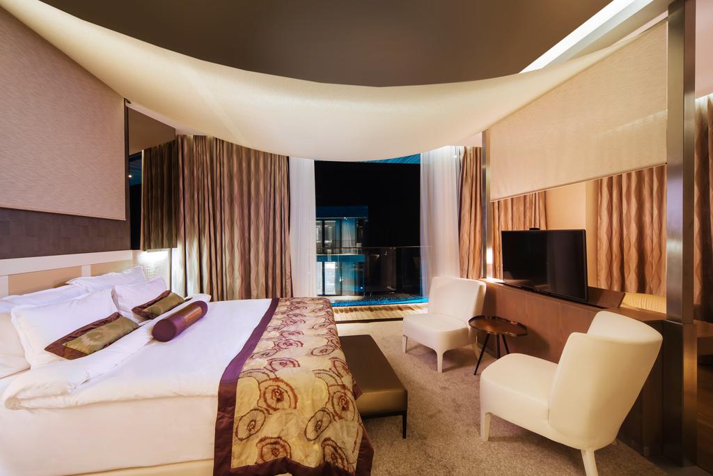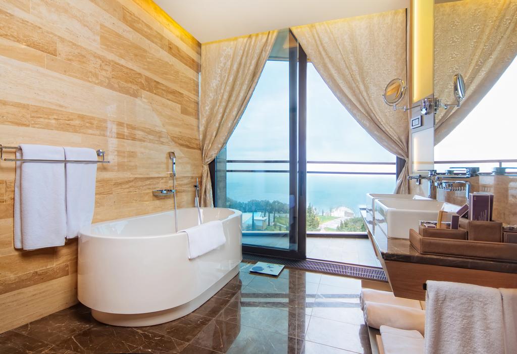 Лучший и один из самых дорогих отелей в регионе Крыма. Современный и неповторимый дизайн, огромные номера, превосходный сервис. Высокий европейский уровень, отличное разнообразное питание, активная анимации в течении всего дня. Спа-центр представляет комплекс косметических процедур и лечебную базу. В ассортименте множество лечебных пакетов, которые можно купить в составе туристической путевки.